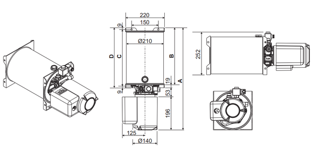 Маслостанция под подъем кузова Hyva 14553501 (24 В, 3.0 кВт, с баком 15 л)