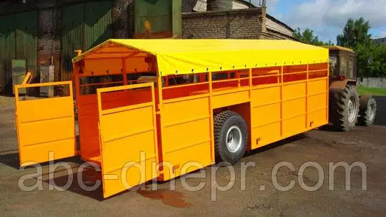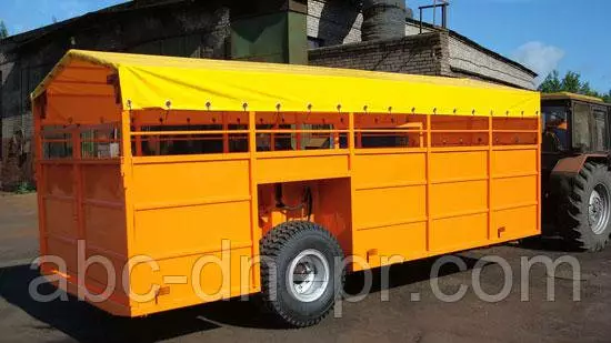 Платформа прицепа для перевозки скота изготовлена из стального каркаса, обшитого стальным листом. Пол прицепа для перевозки скота — рифленый лист. Подъем – опускание (нижнее положение — уровень земли для удобства передвижения животных) платформы прицепа для перевозки скота осуществляется при помощи двух гидроцилиндров.