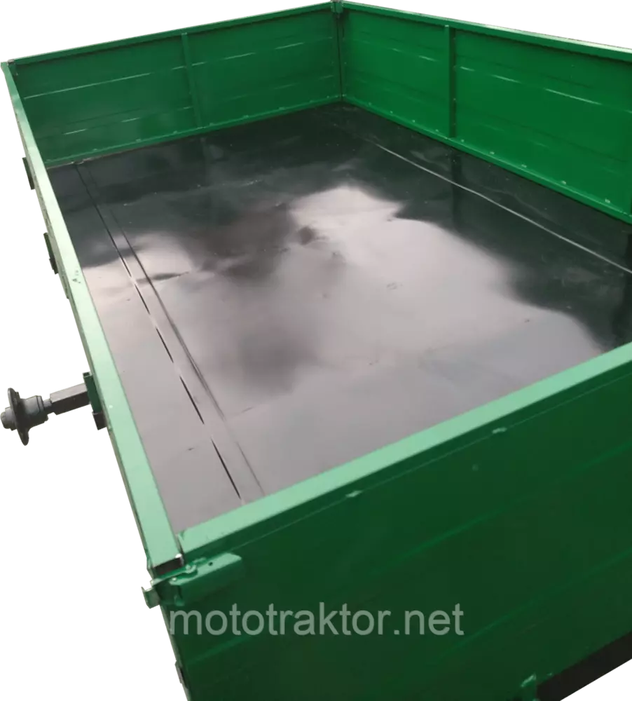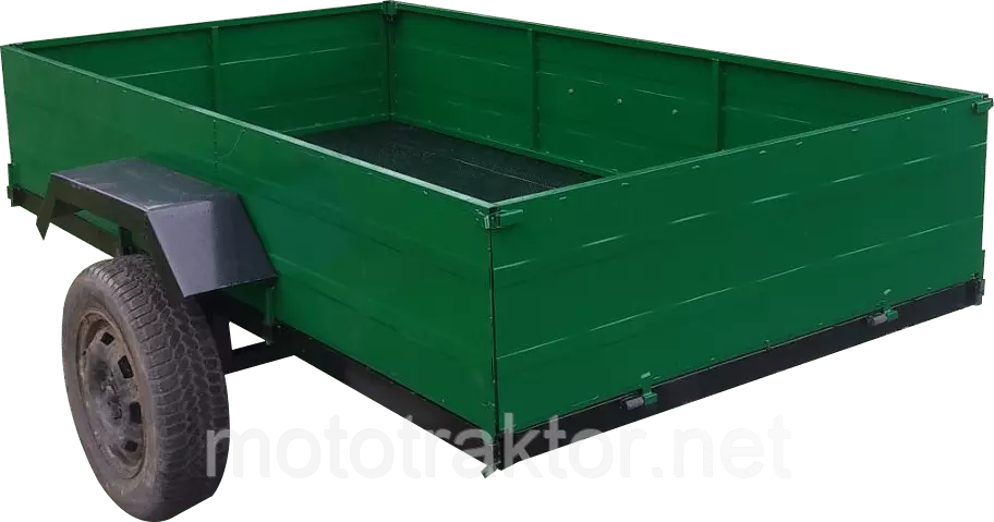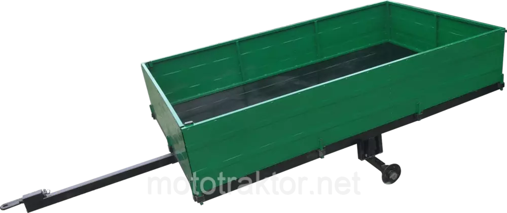 Прицеп мототракторный, сельскохозяйственного назначения для перевозки различных грузов. Грузоподъемность - 1700кг. Размер кузова прицепа - 2200х1250мм. Задний борт откидной, на защелках и завесах. Все борты съемные.Усиленная сцепка. Рама и дышло из трубы 60х40, скоба(сцепка) - круг Ф18
