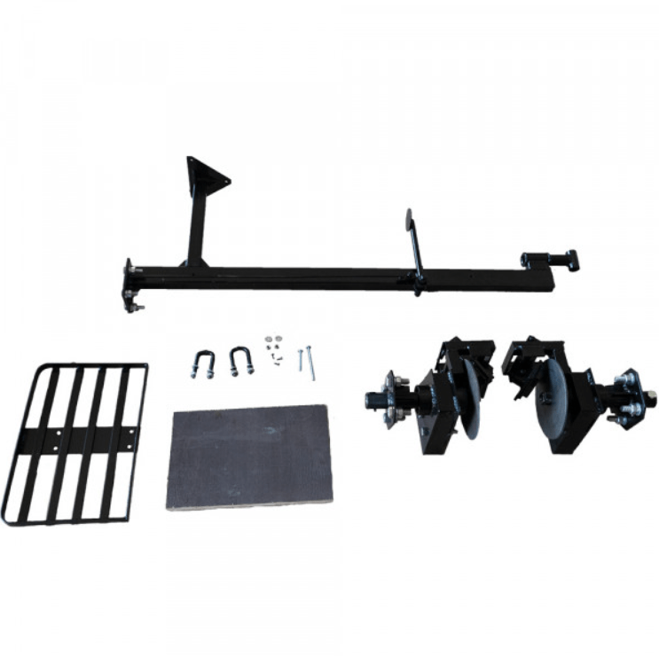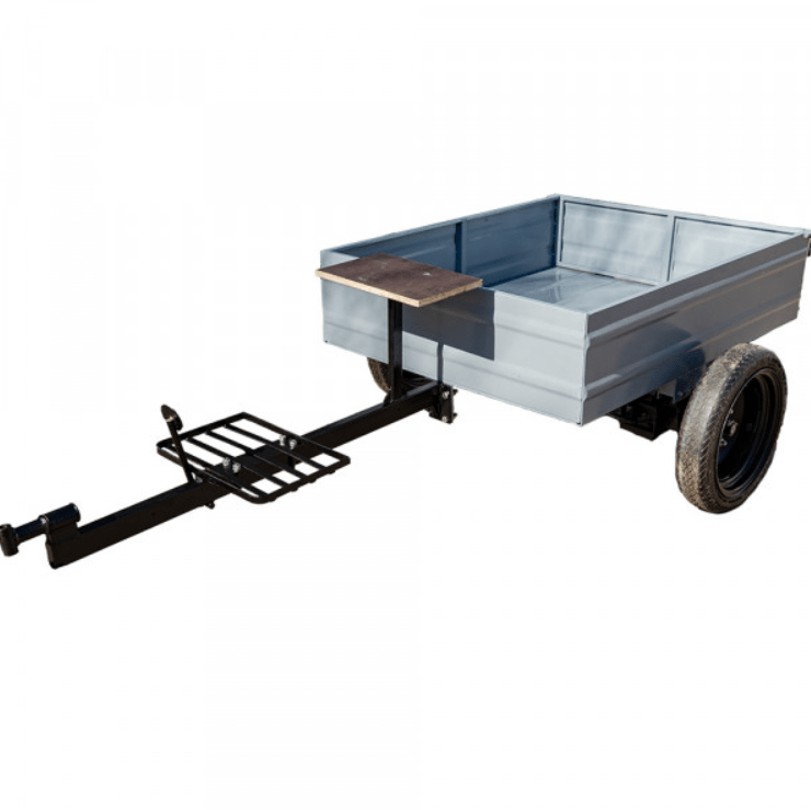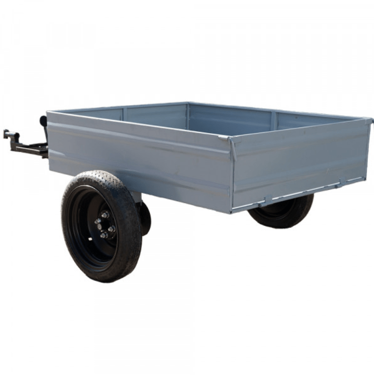 Прицеп несамосвалного типа, то есть кузов не поднимается. Такой вариант идеально подходит для перевозки грузов, не требующих быстрой выгрузки, например мешков с зерном, ящиков с фруктами или строительных материалов. Конструкция кузова обеспечивает максимальную жесткость и выдерживает нагрузку до 200 кг, что делает универсальным прицепом в бытовом и сельскохозяйственном использовании.