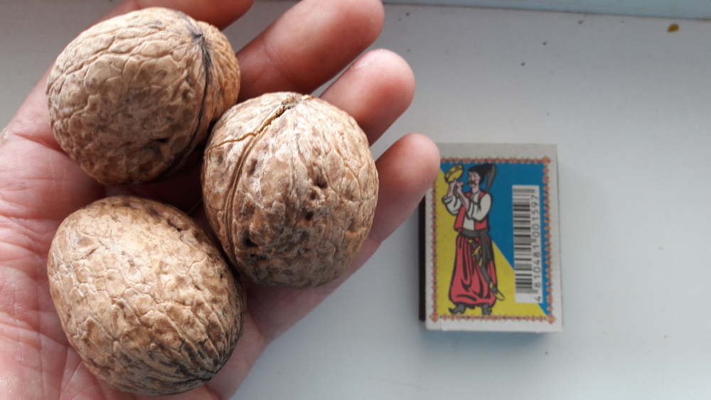Черновицкий 1 более округлой формы, Буковинский 1 округлый, с небольшим конусом. Плоды при этом, выше средних размеров ореха: 14-16г, выход более 50%; а выполненность самого ядра - самого высокого качества: ядро экстра-светлое, извлекается целиком, бабочка равномерно рельефная, вкус гармоничный.