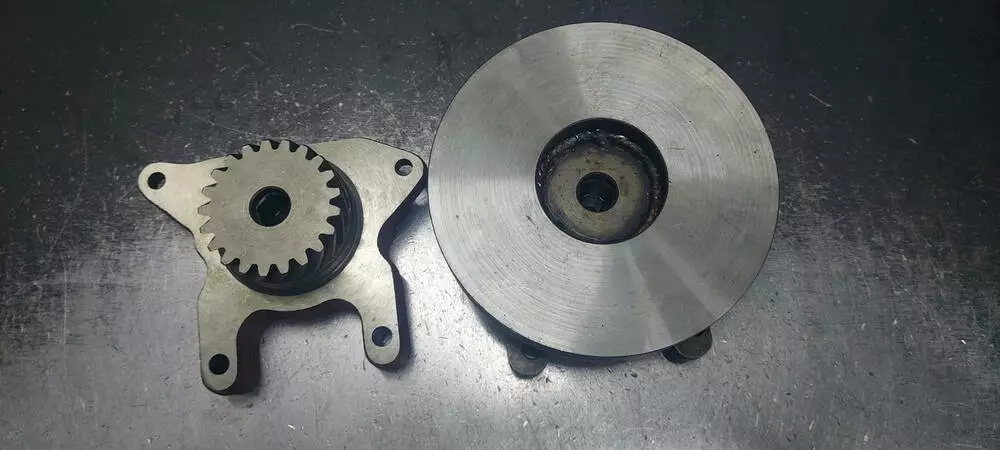 На фото изображен привод насоса НШ без шкива (слева) и со шкивом ( справа) для сравнения