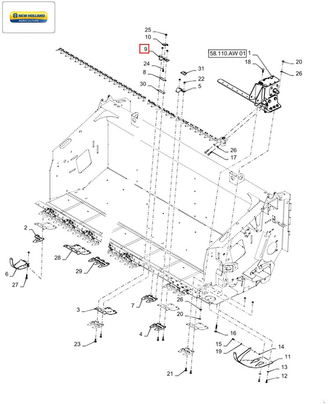 9 86630786 KNIFE CLIP,Heat Treated 30 Foot Header 28