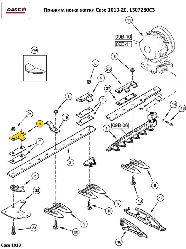Прижим ножа жатки Case 1010-20, 1307280C3