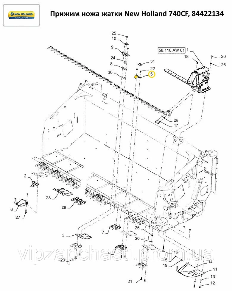 Прижим ножа жатки зернової New Holland 740CF, 84422134