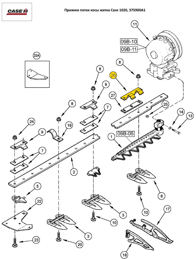 26 - 375900A1 - 1 - CLIP, KNIFE, hold down LH 3"