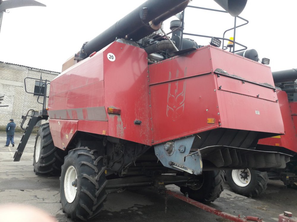 Комбайн ПАЛЕССЕ КЗС 1218. Год выпуска 2011. Мощность двигателя - 330 л.с. Ширина молотильного барабана - 1500мм Диаметр молотильного барабана первого - 600 мм второго - 800 мм Частота вращения вала барабана - 440-875 об/мин Тип соломотряса - 5-ти клавишный Площадь сепарации, не менее - 6, 15 м2 Общая площадь решет очистки, не менее - 5 м2 Общая площадь сепарации подбарабанья - 2.39 м2 Длина клавиш соломотряса - 4.1м Объем бункера - 8 тонн Погрузочная высота выгрузного шнека, не менее - 8м Пропускная способность по хлебной массе, не менее - 12 кг/с Производительность по зерну за час осн. Времени - 18 тонн Ширина захвата жатки - 7м Емкость топливного бака - 600 Габаритные размеры и масса, не более Длина - 10850 Ширина - 7600 Высота - 4500 Масса в основной комплектации (без учета транспортной тележки) - 16600 кг Находятся в г. Вознесенск. В комплект входят зерновая жатка 7м и тележка.