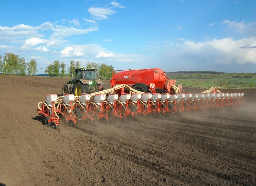 Причіпна 24-рядна вакуумна сівалка з внесенням мінеральних добрив Gaspardo Julia зі збірною рамою для точного висіву насіння соняшнику, кукурудзи, сорго або сої за мінімальною або нульовою технологією обробітку грунту. Вакуумна система притиску насіння до посівного диска забезпечує точну розкладку в рядку, мінімізує кількість двійників. Глибина посіву становить від 1 см до 12 см, яка регулюється досить зручно - механічно, за допомогою вентиля. Тиск на грунт регулюється пневматичними пружинами і становить від 120 кг до 200 кг, перед кожною секцією встановленні турбоножі, які забезпечують висів при будь-яких умовах і з різною кількістю пожнивних залишків на полі. Опціональний електропривід на висівних апаратах дозволяє працювати з відключенням секцій при роботі з перекриттям, тим самим заощаджуючи посівний матеріал.