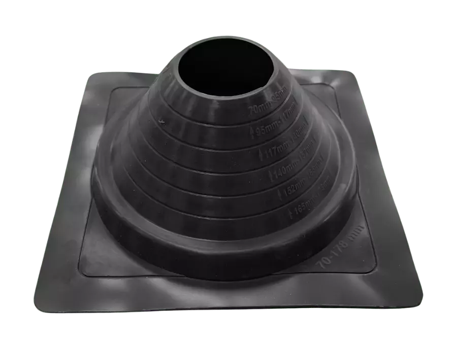 Черный кровельный проход подходит для монтажа на крышах с углом наклона от 0 до 20 градусов и может использоваться с трубами диаметром 70-180 мм. Изготовленный из высококачественного термостойкого силикона, он выдерживает широкий диапазон температур — от -40°C до +250°C, что делает его идеальным для любых климатических условий. Благодаря своей пожаростойкости и устойчивости к воздействию озона, уплотнитель сохраняет свои свойства даже при длительном использовании.