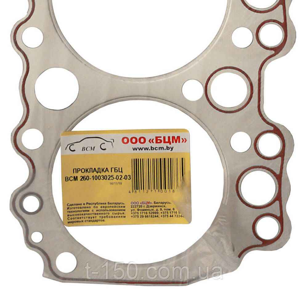 Прокладка ГБЦ Д-260 МТЗ-1221/1523/2022/2122, цельная металлизированная с герметиком, 263-1003020-02-03, БЦМ