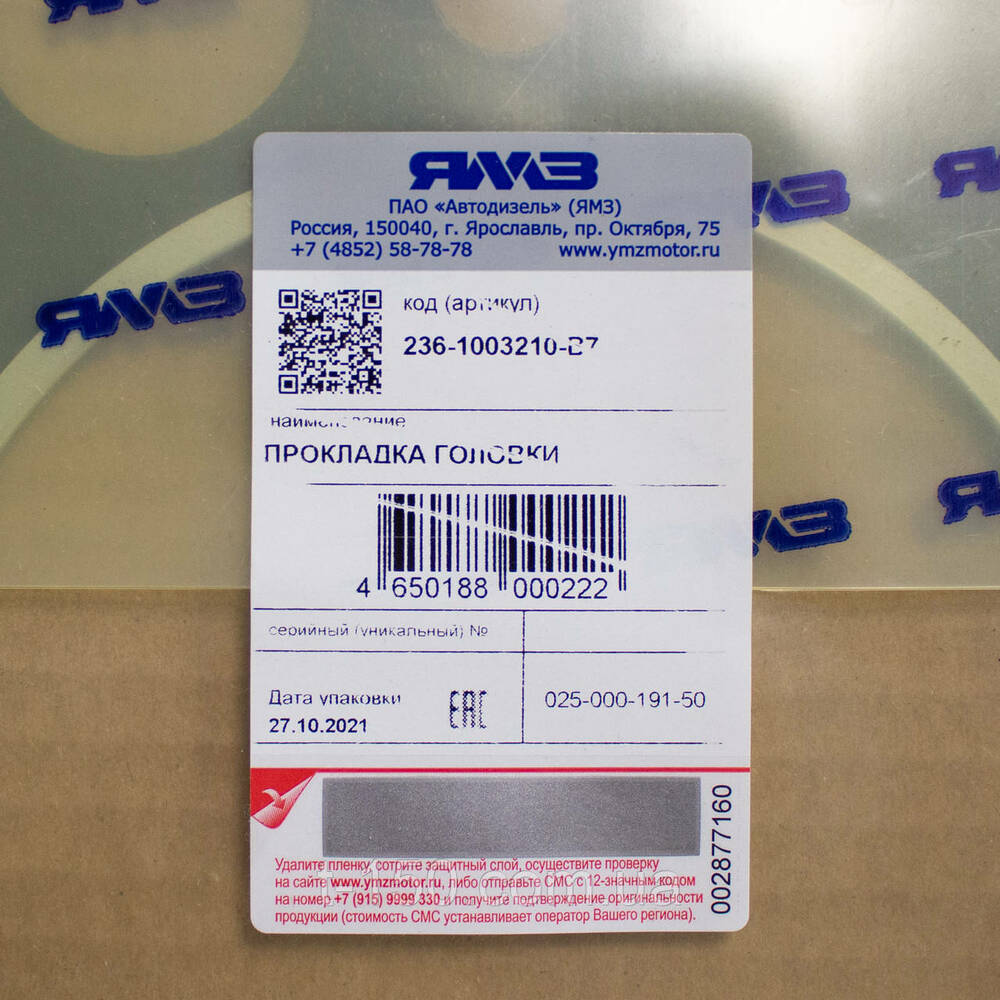 | 1 | 236-1003210-В3 | Прокладка |
