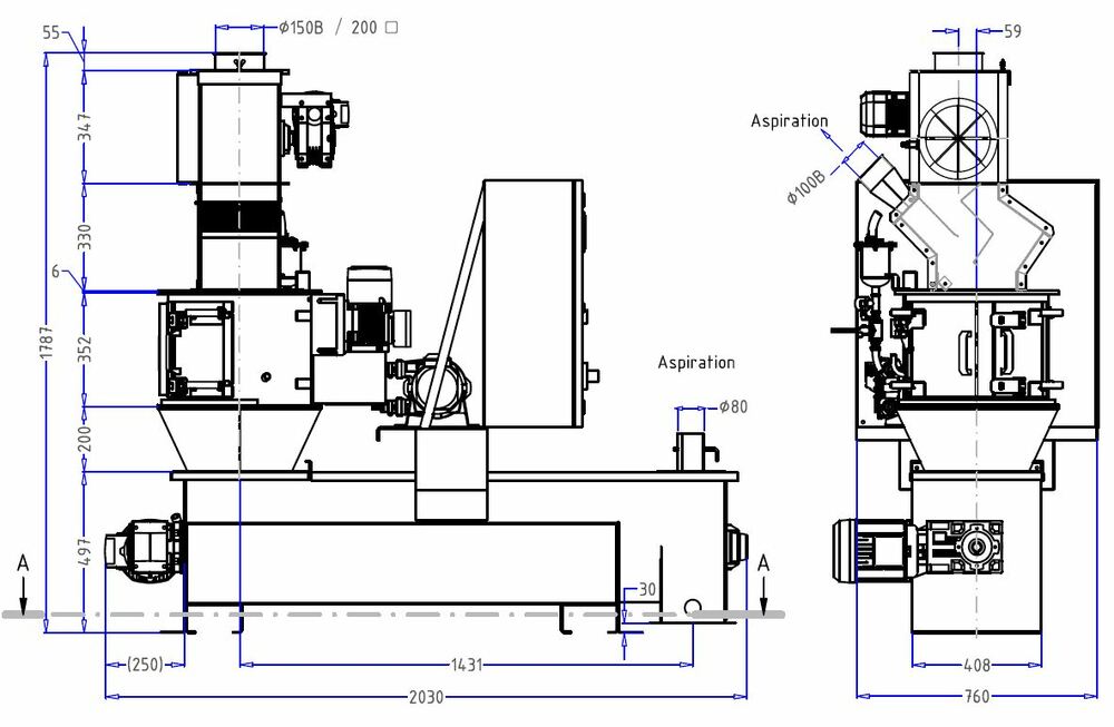 - поперечный воздушный сепаратор, фильтр для очистки воздуха, аспирационный трубопровод любой конфигурации, транспорт для загрузки/выгрузки, упаковка в биг-бэги/мешки до 50 кг.