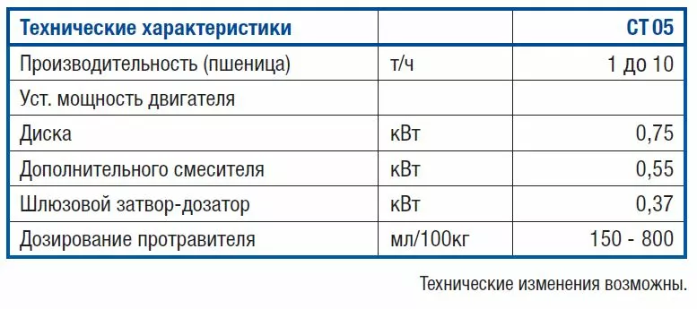 Через загрузочное отверстие семенной материал поступает в камеру протравливания. Вращающийся распределительный диск распределяет продукт до образования равномерной семенной «завесы». Протравливающее вещество поступает через дозатор на распылительный диск, который равномерно распыляет и наносит его по поверхности семенной «завесы». После нанесения протравителя продукт подается в дополнительный смеситель, где нанесенный химикат распределяется по всей поверхности зерна.