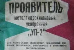 Проявитель УП-2 (М)  - проявитель для фотобумаги, фотопластин, технической фотографии, литографии и т.д.  Весьма интенсивный, в процессе проявления дает возможность получить высокий контраст изображения и высокие максимальные плотности изображения. При этом, он так же прекрасно подходит для "ПУШирования", т.е. для поднятия светочувствительности материала.