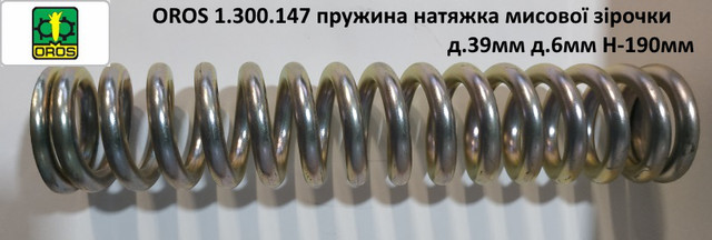 Пружина натяжка мисової зірочки д.39 мм д.6 мм H-190 мм OROS, 1.300.147
