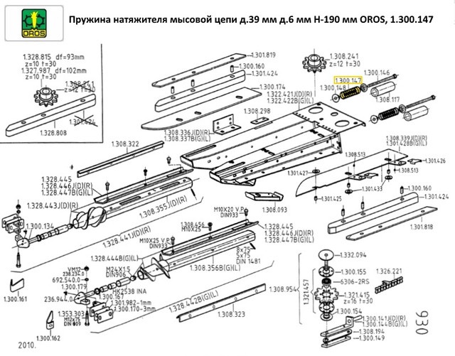 Пружина натяжителя мысовой цепи д.39 мм д.6 мм H-190 мм OROS, 1.300.147