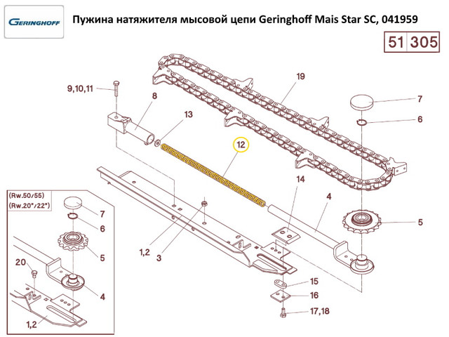 Пружина натяжителя мысовой цепи Geringhoff Mais Star SС, 041959
