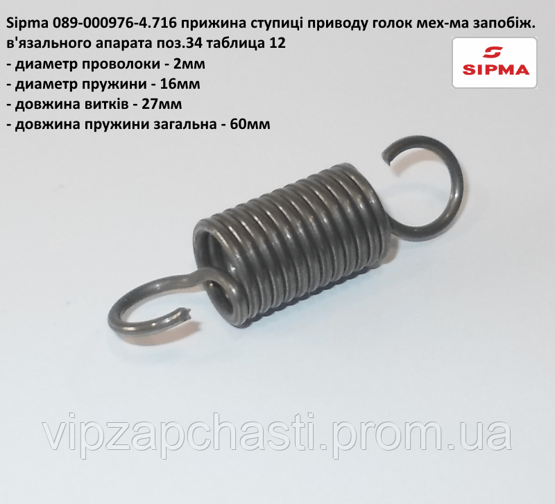 34 . . 089-000976-4.716 Пружина 2x14x55-13 . . . . (запчасти Sipma-224)