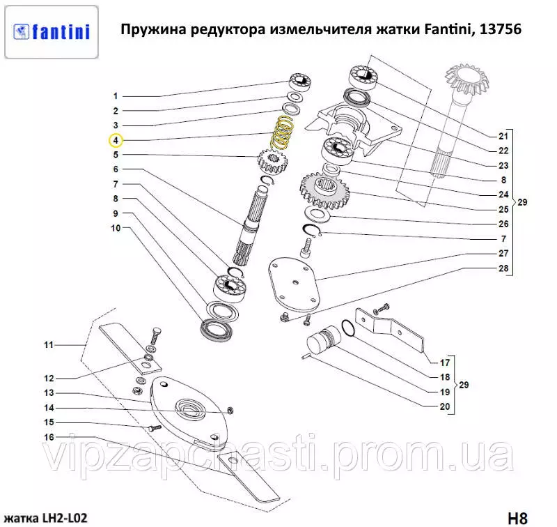Пружина редуктора измельчителя жатки Fantini, 13756