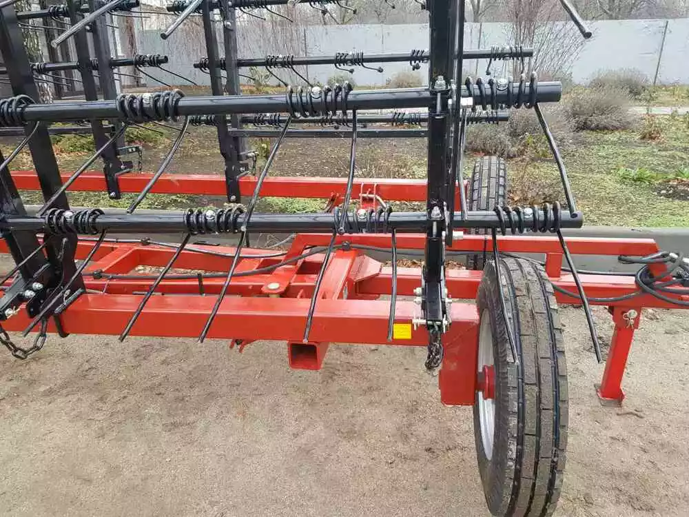 Плавная регулировка угла атаки зубов позволяет настроить пружинную борону для любых условий эксплуатации, делая ее универсальным и очень популярным орудием.