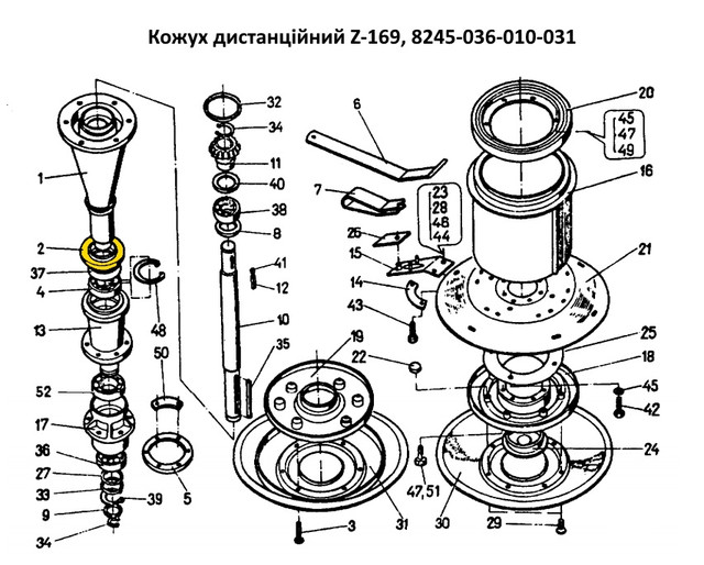 - Подшипники барабана (позиции 1,2,4,8,9,10,11,12,13,34,35,37,38,40,41,48,52) 8245-036-010-788 2