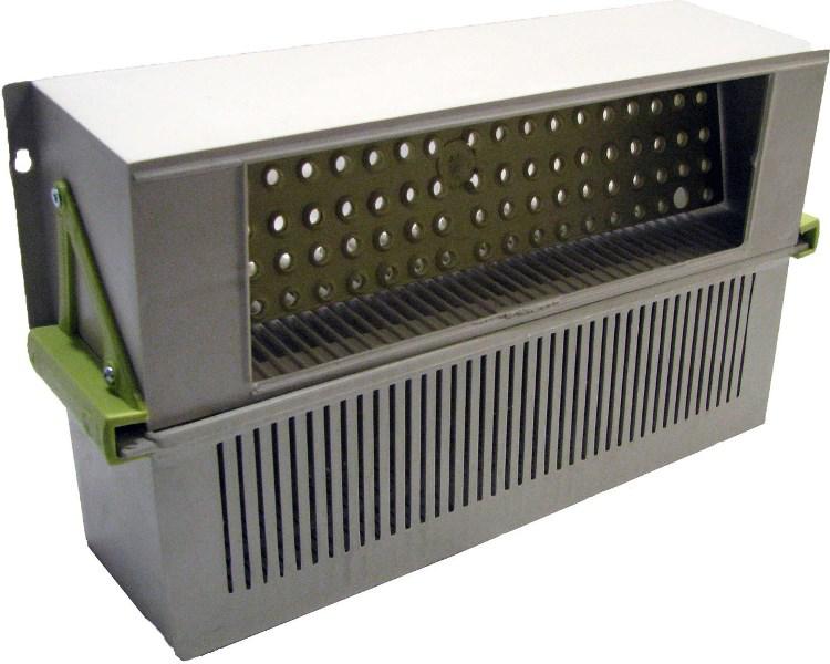 Пыльцесборник 270 мм (2Д) предназначен для сбора цветочной пыльцы, которую пчелы приносят в виде обножки. Он устанавливается на переднюю стенку улья так, чтобы решетка с отверстиями диаметром 4,9 мм находилась напротив нижнего летка. Когда пчелы проходят через эти отверстия, обножка цепляется за края, и пыльца падает в специальный ящичек для сбора.
