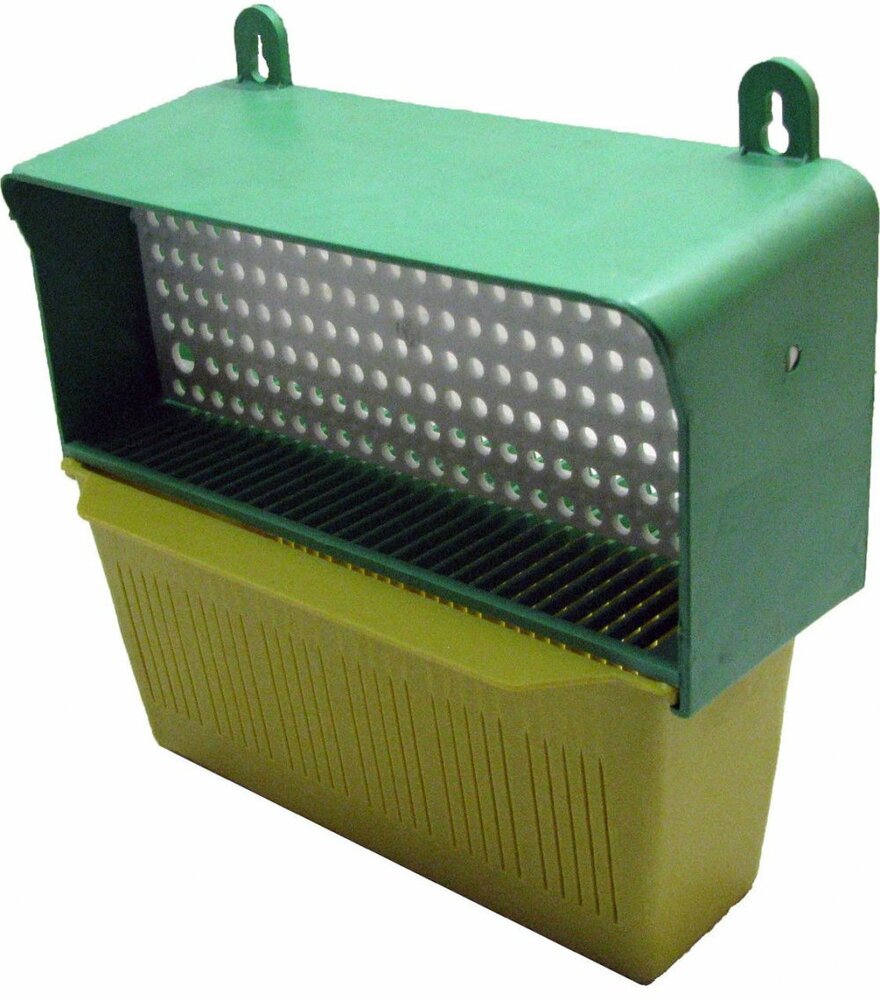 Навешивается на переднюю стенку улья так, чтобы решетка с калиброванными отверстиями (5 мм) была размещена напротив нижнего летка. Верхний леток закрывается, а прилетная доска убирается, чтобы пыльцесборник плотно прилегал к передней стенке улья и пчелы могли попасть в улей только через отверстие в пыльцесборнике, тогда пыльца, размещенная на задних ножках пчелы в виде комочка, задевается за края отверстий и падает в специальный ящичек для ее сбора.