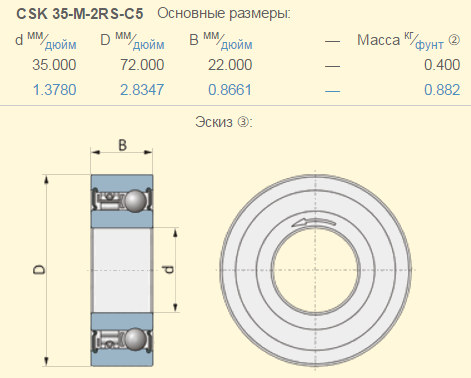 R2055034 подшипник CSK 35-M-2RS-C5