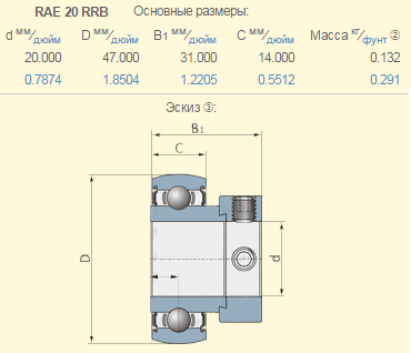 RAE20RRB подшипник не смазываемый (Timken, SKF, INA, RBF, NTN, SNR)