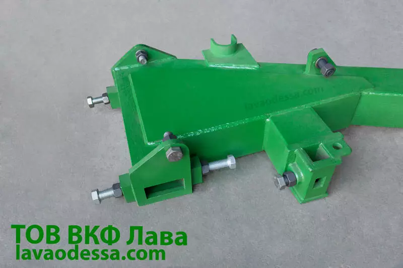 Рама плуга ПНБ 3-35  представляет собой составную сварную конструкцию  с приварными кронштейнами для крепления корпуса. Основной брус рамы изготавливается из  двух уголков 125х125х8. Рама в комплекте идет с регулировочными болтами вала плуга и болтами для крепления навески.
