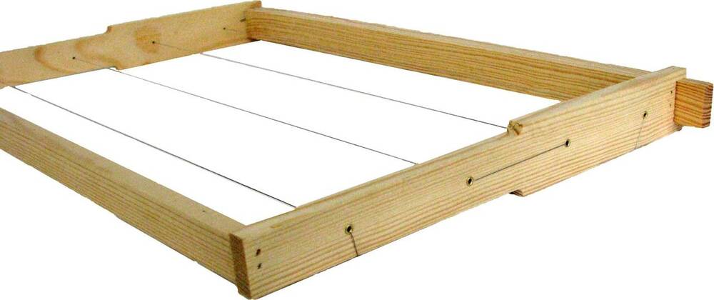 Стандартная пчеловодческая рамка размером 435Х300 мм. Рамка дадан, с разделителем Гофмана. Верхний брус рамки размером 470Х25Х20 мм. Поставляется в сбитом виде с натянутой нержавеющей проволокой в 4 ряда, и латунными втулками.