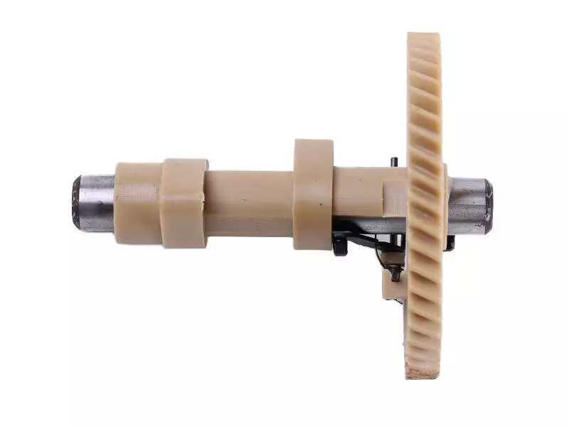 Распредвал ТАТА на бензиновый двигатель P70F является частью системы газораспределения. Предназначен для управления моментами открывания и закрывания впускного и выпускного клапанов. Конструктивно представляет собой металлическую ось, на которой жестко установлена пластиковая приводная шестерня и пластиковые кулачки. Благодаря малой мощности двигателя P70F и небольшим нагрузкам на механизм клапанов применение пластика экономически оправдано и не влияет на надежность двигателя. Приводная шестерня коленвала входит в зацепление с приводной шестерней распредвала и передает движение на кулачки. Последние, вращаясь, воздействуют на толкатели и передают усилие на коромысла и клапаны силового агрегата. Кулачки расположены под определенным углом и управляют клапанами в строго определенные моменты времени. Особенности использования На приводной шестерне распредвала расположен механизм автодекомпрессии, приоткрывающий выпускной клапан в момент запуска двигателя тем самым снижая компрессию и значительно облегчая ручной запуск двигателя. На боковой стороне приводной шестерни расположена специальная метка, которая в момент установки распредвала должна совпадать с соответствующей меткой на шестерне коленвала, благодаря чему синхронизируется движение клапанов и поршня. Как и все подвижные детали, распредвал подвержен износу. В первую очередь это относится к зубьям шестерни и поверхности кулачков. Изменение их геометрии приводит к неполному открыванию клапанов, снижению мощности мотора или выходу его из строя. В таком случае необходима его полная замена. Если при запуске двигателя необходимо прилагать к стартеру слишком большое усилие – может быть неисправным механизм автодекомпрессии.