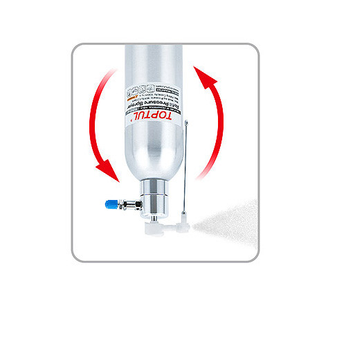 Закачка воздуха в распылитель производится через универсальный адаптер. Оборудован предохранительным клапаном с предусмотренным значением 90 PSI (6.3 бар).