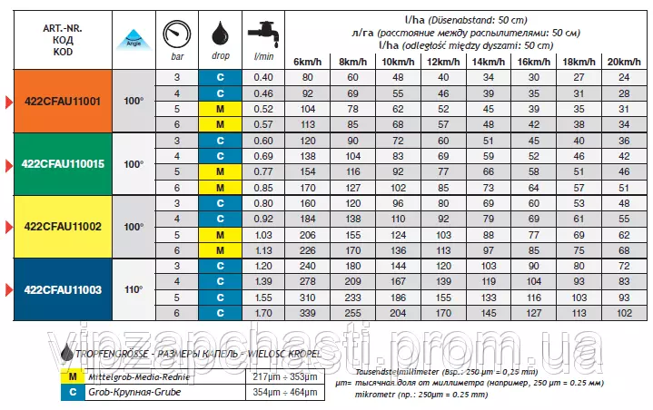Обозначение распылителей CFAU