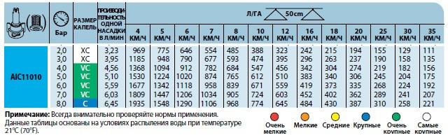 Характеристики распылителя AIC110 TeeJet: