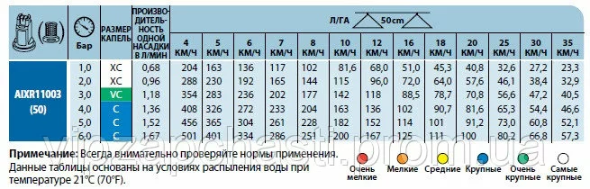 • Широкий угол распыления 110°, конический рисунок плоскоструйного распыления с технологией всасывания воздуха, обеспечивает лучшее управление сносом распыления.