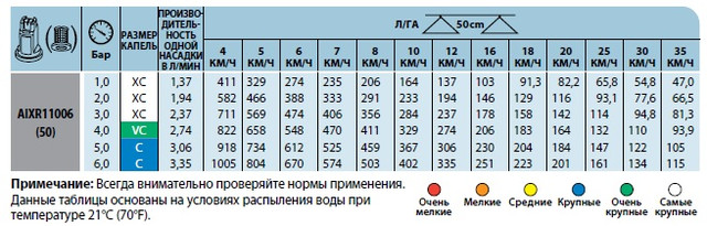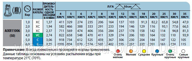 Характеристики распылителя AIXR TeeJet: