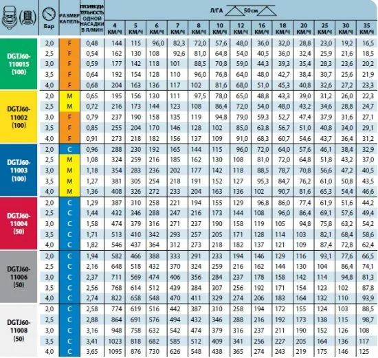 6. Изготавливаются наконечники с шестью уровнями производительности и рекомендованным давлением—2–4 бар (30–60 PSI).