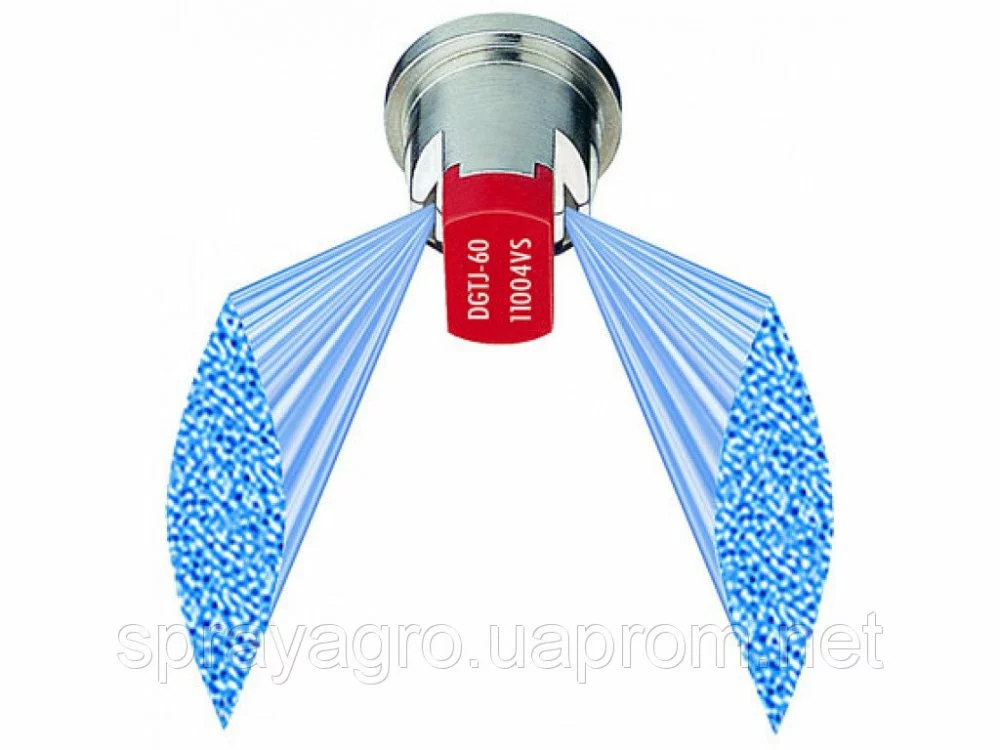 2. DG TwinJet обеспечивают образование больших по размеру капель и улучшенное управление сносом при распылении по сравнению со стандартным распылительным наконечником TwinJet такой же производительности.