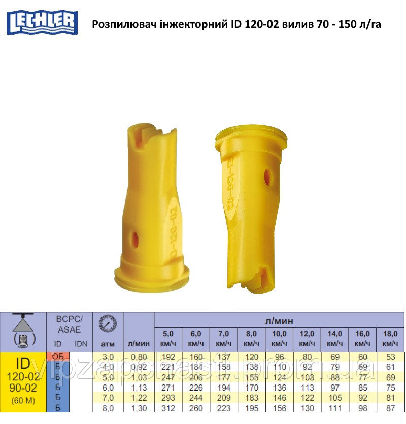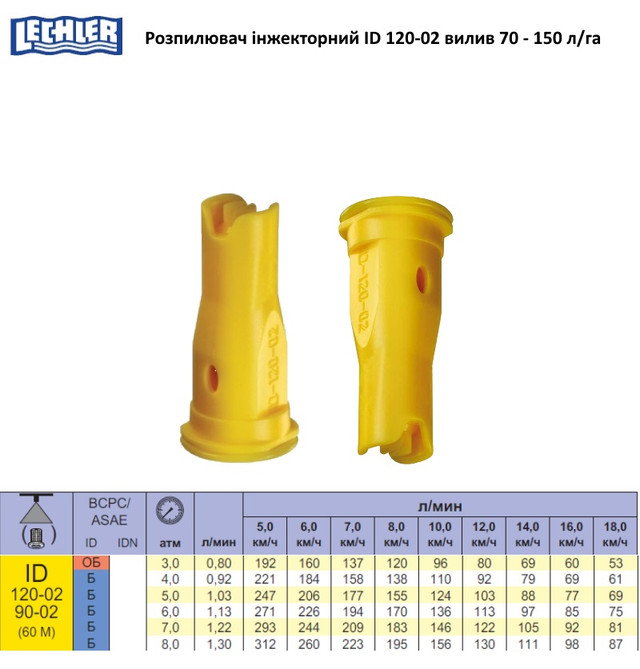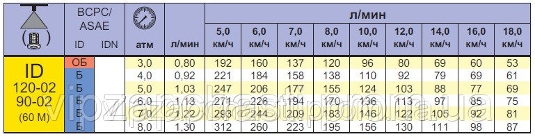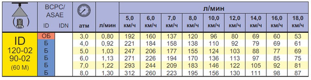 Характеристики распылителей ID Lechler
