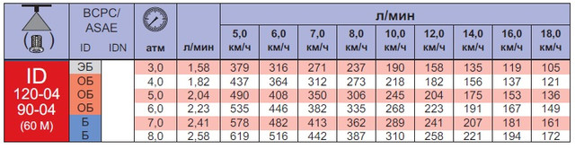 Характеристики распылителей ID Lechler