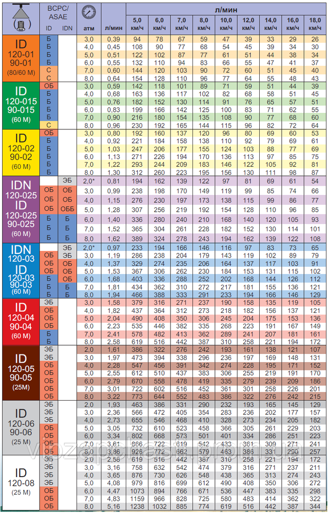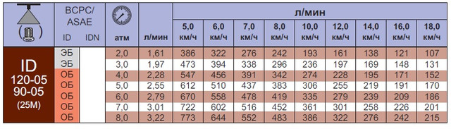 Характеристики распылителей ID Lechler