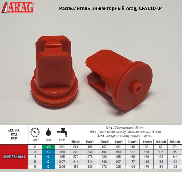 Распылитель инжекторный (средняя капля) 200-250 л/га Arag, CFA110-04