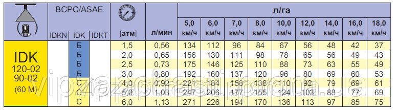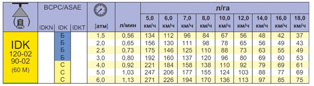 Характеристики распылителей IDK Lechler