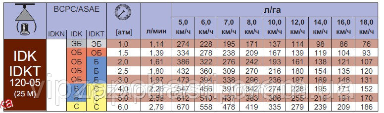 • При давлении более 3 атм меньше антисносовая эффективность, чем у известных распылителей ID. Размеркапель от крупных до средних