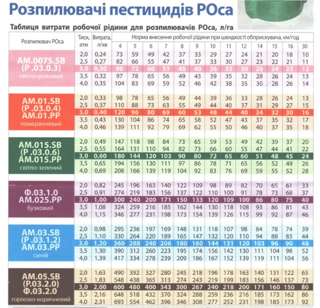-  распылители Р.03.0.4 одной заправкой опрыскивателя с баком 2000 литров при скорости движения 9 км/час позволяют провести опрыскивание на площади 40 га.