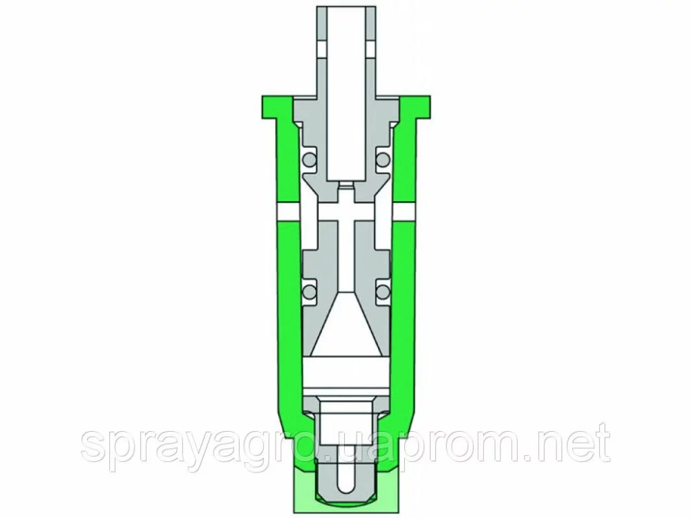 5. Автоматическое выравнивание струи при использовании колпачка 25598-*-NYR Quick TeeJet® и прокладки.