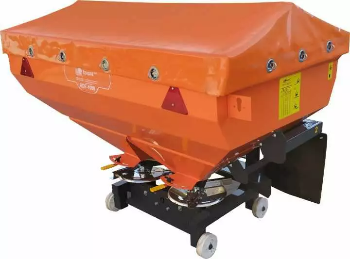 Разбрасыватель минеральных удобрений РДФ-1000 (емкость бункера - 1000 л) используется для подкормки почвы под такие растения как пшеница, рож, ячмень, овес, сорго, рапс, подсолнух, кукуруза и бобовые.