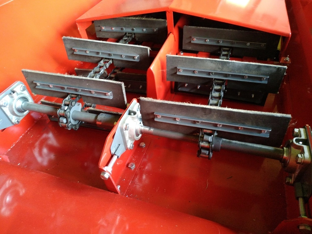 установлены два скребковых транспортера вращающихся в одном направлении и одного