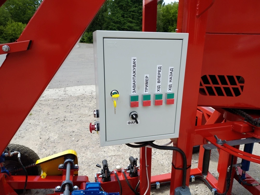 триммер. Рама разгрузчика имеет колеса, что делает разгрузчик более мобильным. Выгрузной